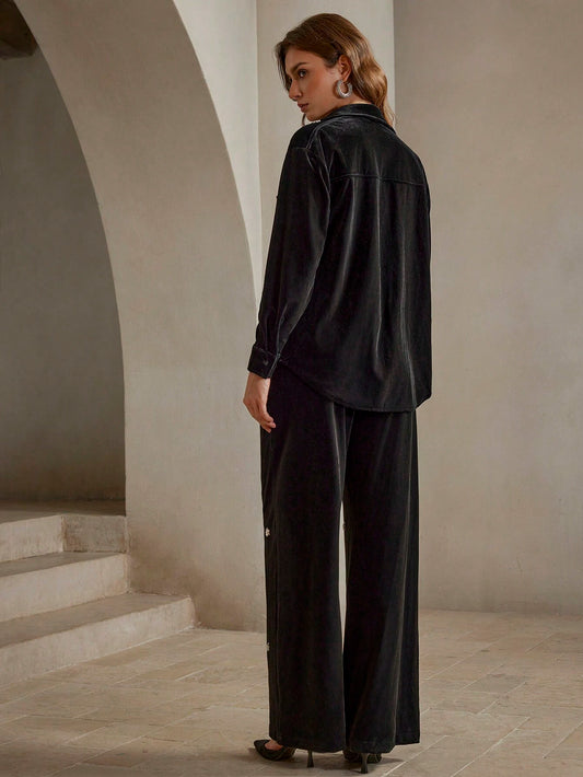 Anewsta - Luxury 2pcs Velvet Set with Rivet Decor