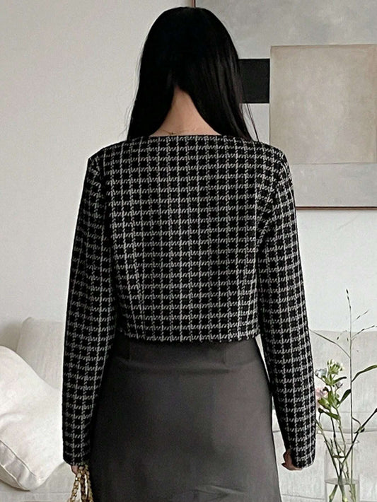 DAZY - Plaid Round Neck Stylish Short Cardigan Jacket