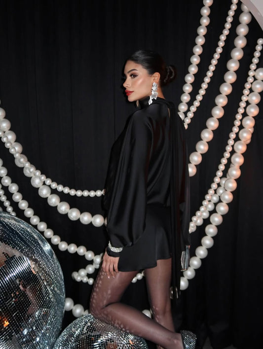 The Royal High-Neck Satin Mini Dress