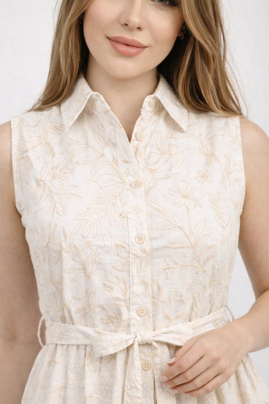 Elegant Embroidered Linen Maxi Dress