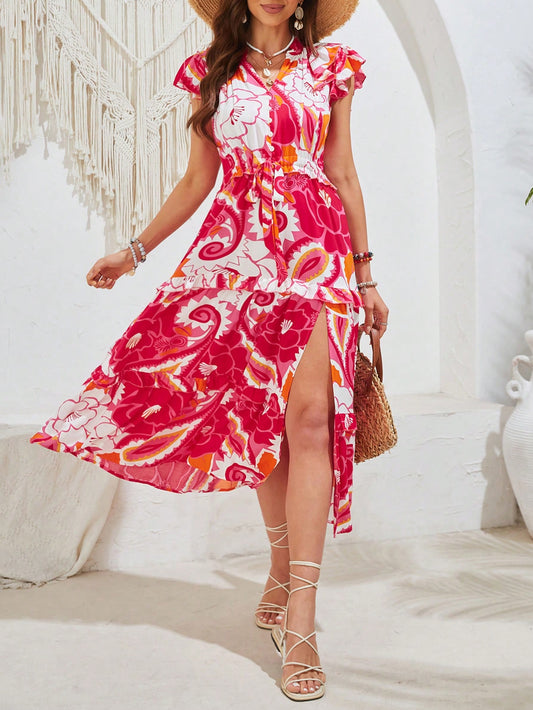 SHEIN Frenchy Allover Print Guipure Lace Panel Dress