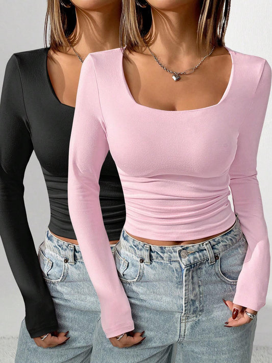 Shein INAWLY Ruched Fitted T-Shirt pink only one