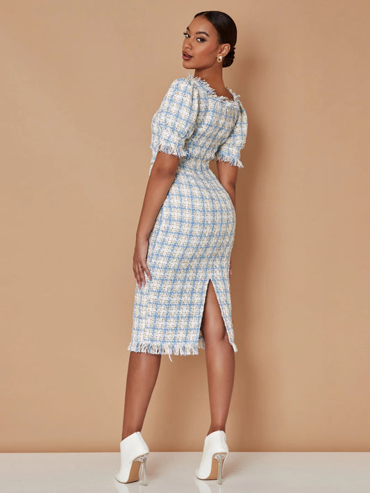 SHEIN Essnce Plaid Square Neck Tweed Dress
