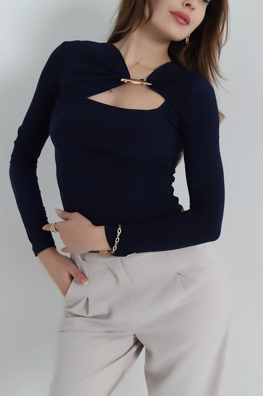 The Sandy Buckle-Detail Elegant Blouse - Black