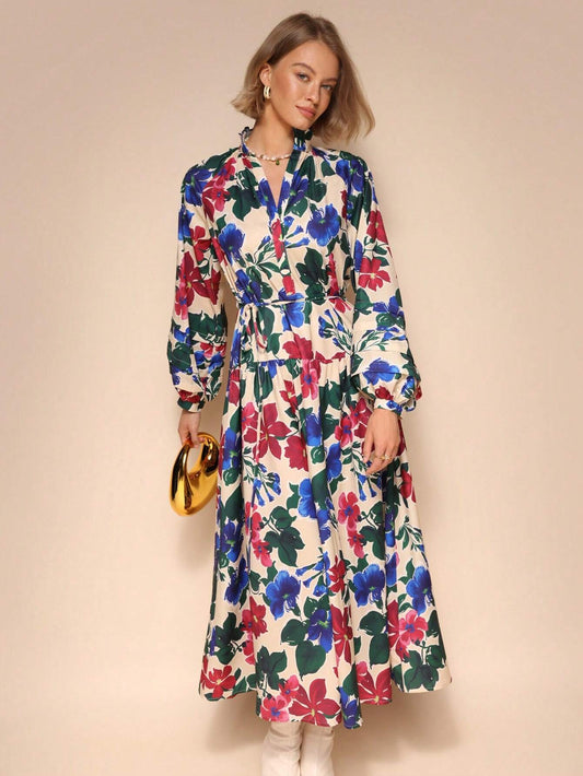 SHEIN Chiquease Floral Tie-Waist Midi Dress