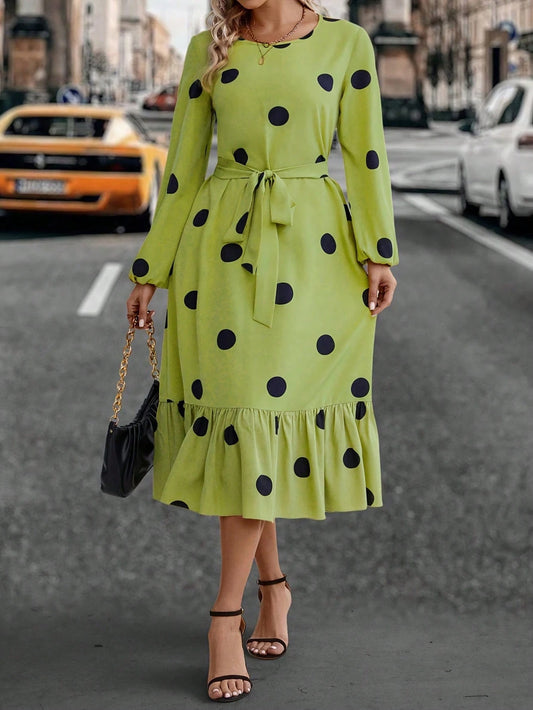 Shein Polka Dot Long Sleeve Dress – kiwi 🥝