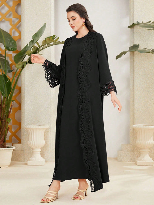 SHEIN Lounge Ribbed Knit Lace Trim Set