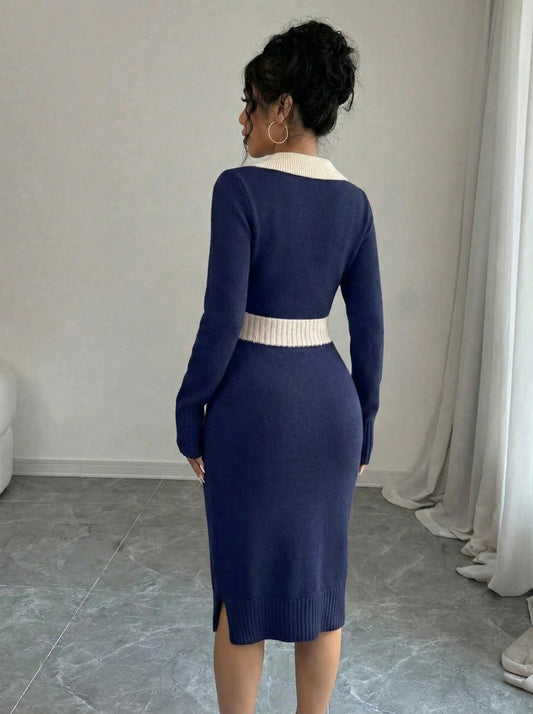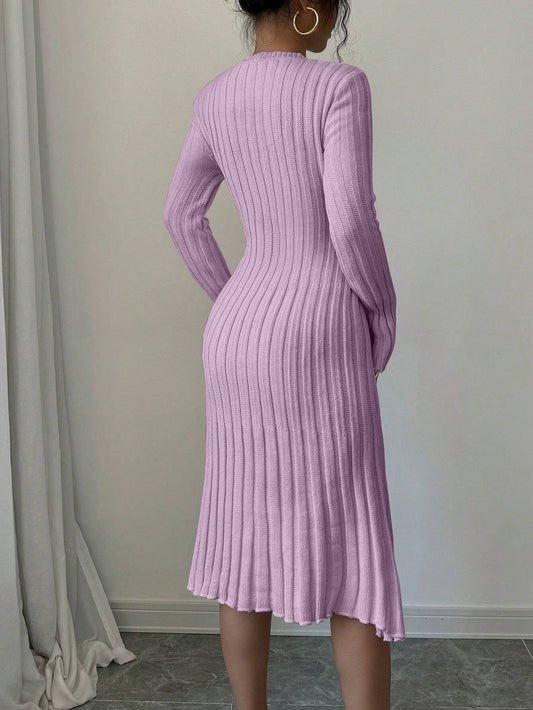 Elenzga Elegant Long Sleeve Round Neck Knit Dress
