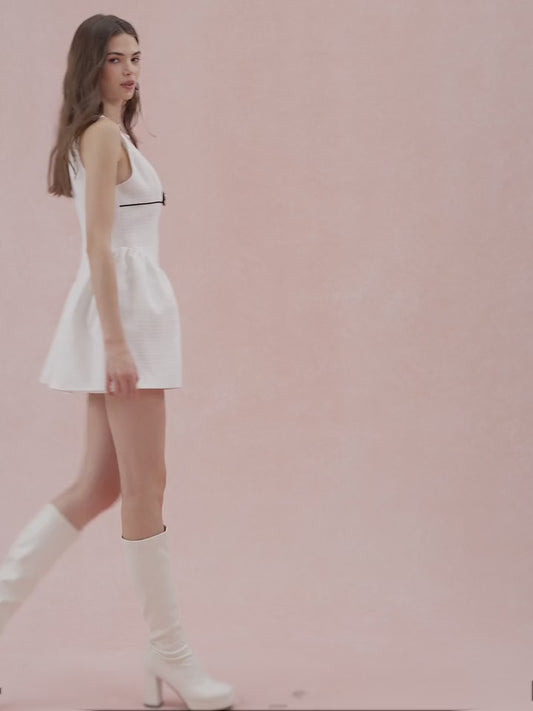 Enchnt Contrast Bow Tweed Puff Hem Dress