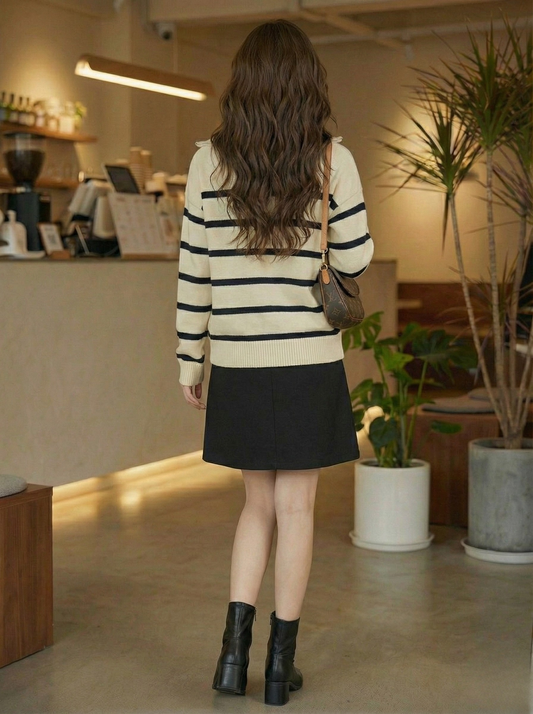 SHEIN FRIFUL V-Neck Drop Shoulder Loose Sweater