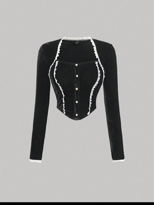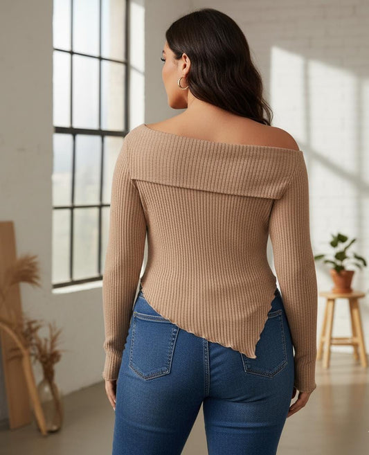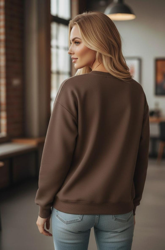 FRIFUL Round Neck Drop Shoulder Long Sleeve Sweatshirt