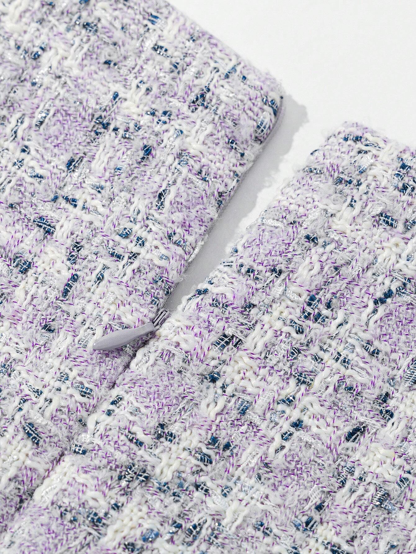 فستان ميني أنيق بخامة تويد راقية، مزوّد بأزرار لؤلؤ تضيف لمسة أنثوية فخمة.