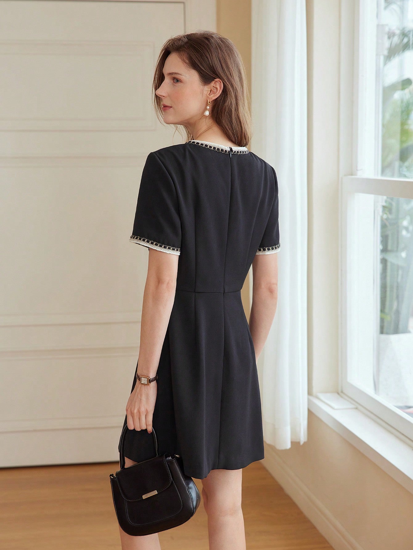 • A sophisticated dress from MOTF's premium collection featuring chic contrast binding. • Structured silhouette with a sleek back zipper for a seamless and tailored fit. • High-quality breathable fabric that exudes luxury and professional elegance. • The perfect choice for corporate meetings or high-end social gatherings.
