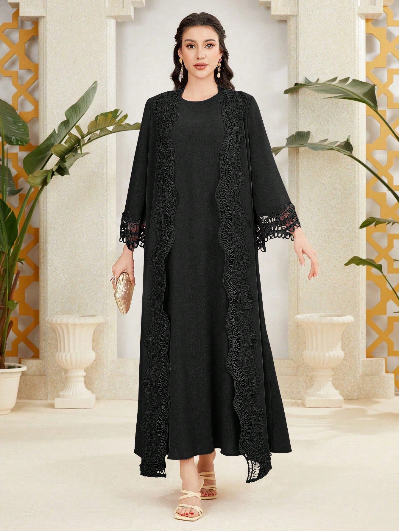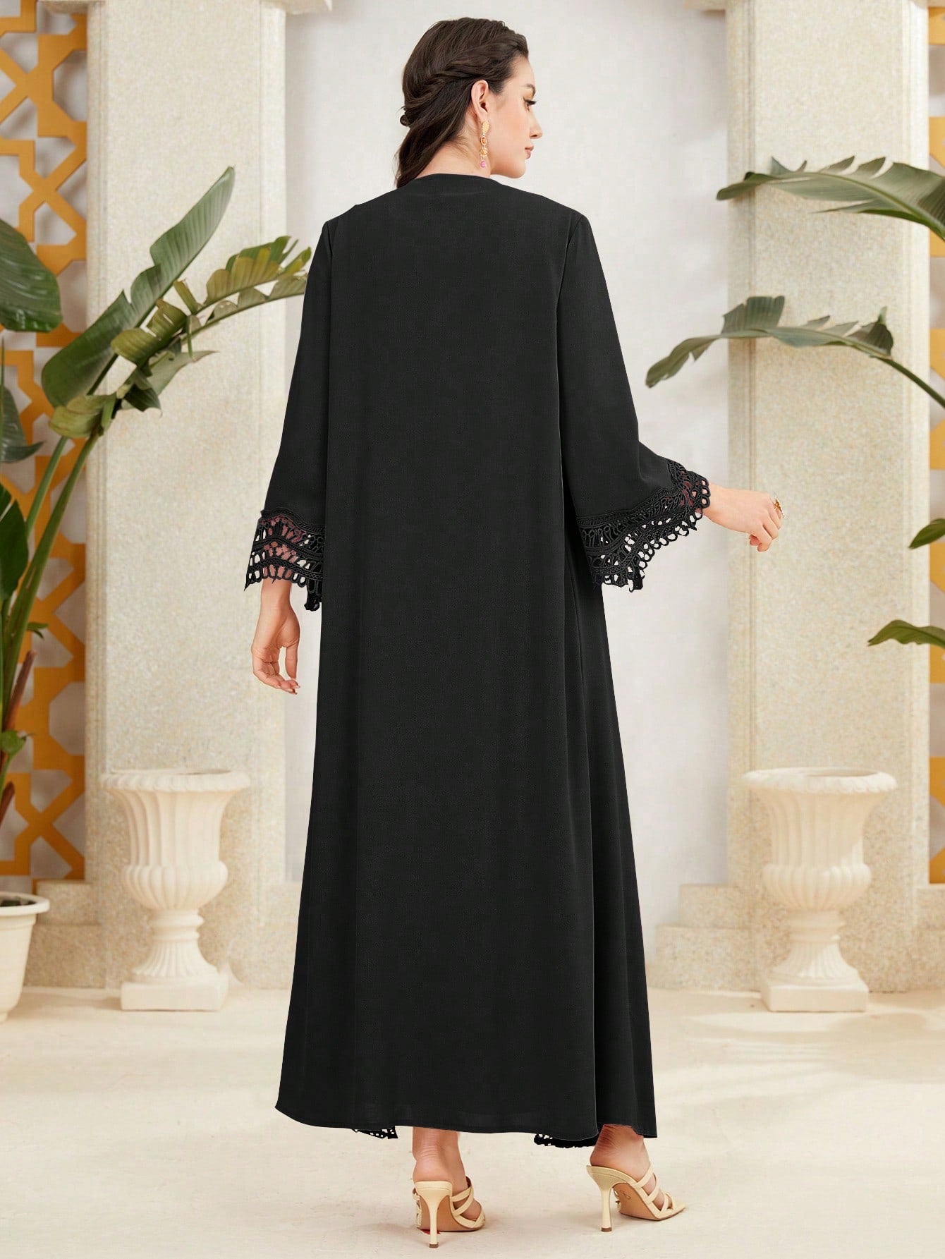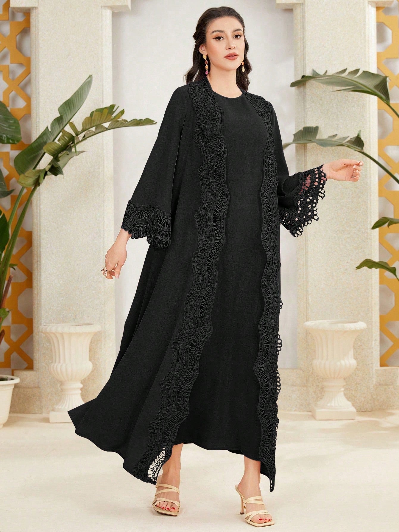 This Shein open black lace cardigan adds a delicate, stylish layer to your outfit. Designed as an outer piece only, it beautifully enhances your look without the inner dress included. Perfect for adding elegance and a touch of sophistication to any ensemble.
