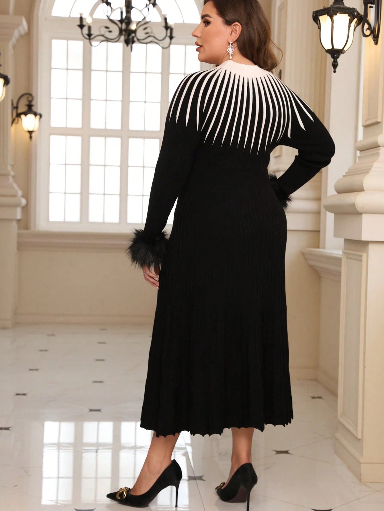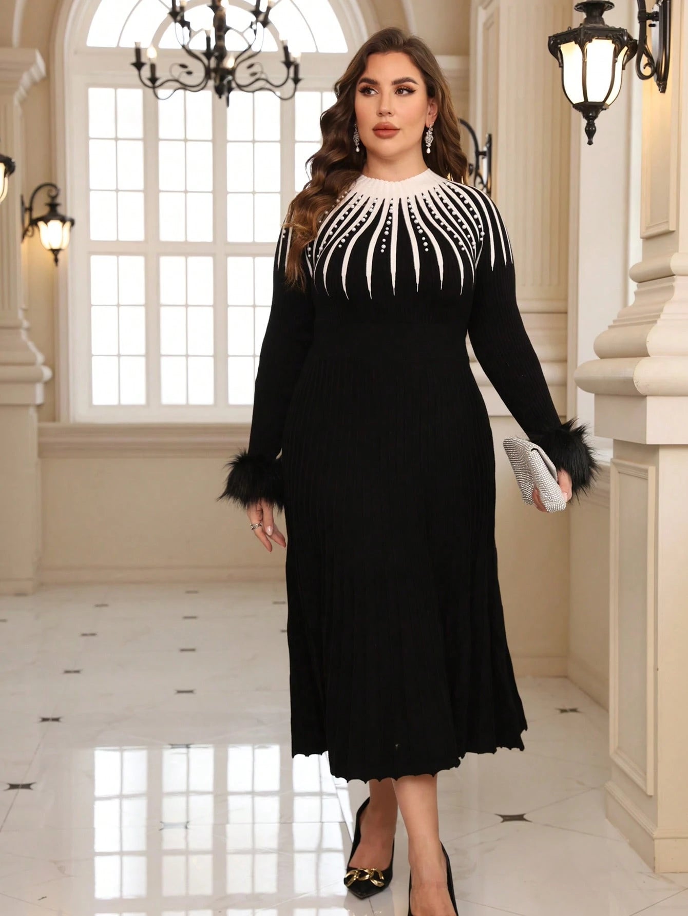 SHEIN Clasi Plus Fuzzy Cuff Pearls Beaded Sweater Dress
