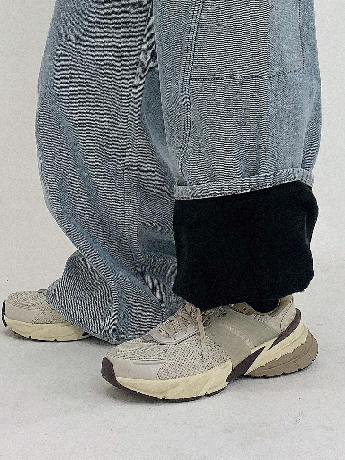 DAZY casual washed wide leg denim jeans, featuring a thick inner lining for extra warmth. Perfect for fall and winter wear with a trendy relaxed fit.