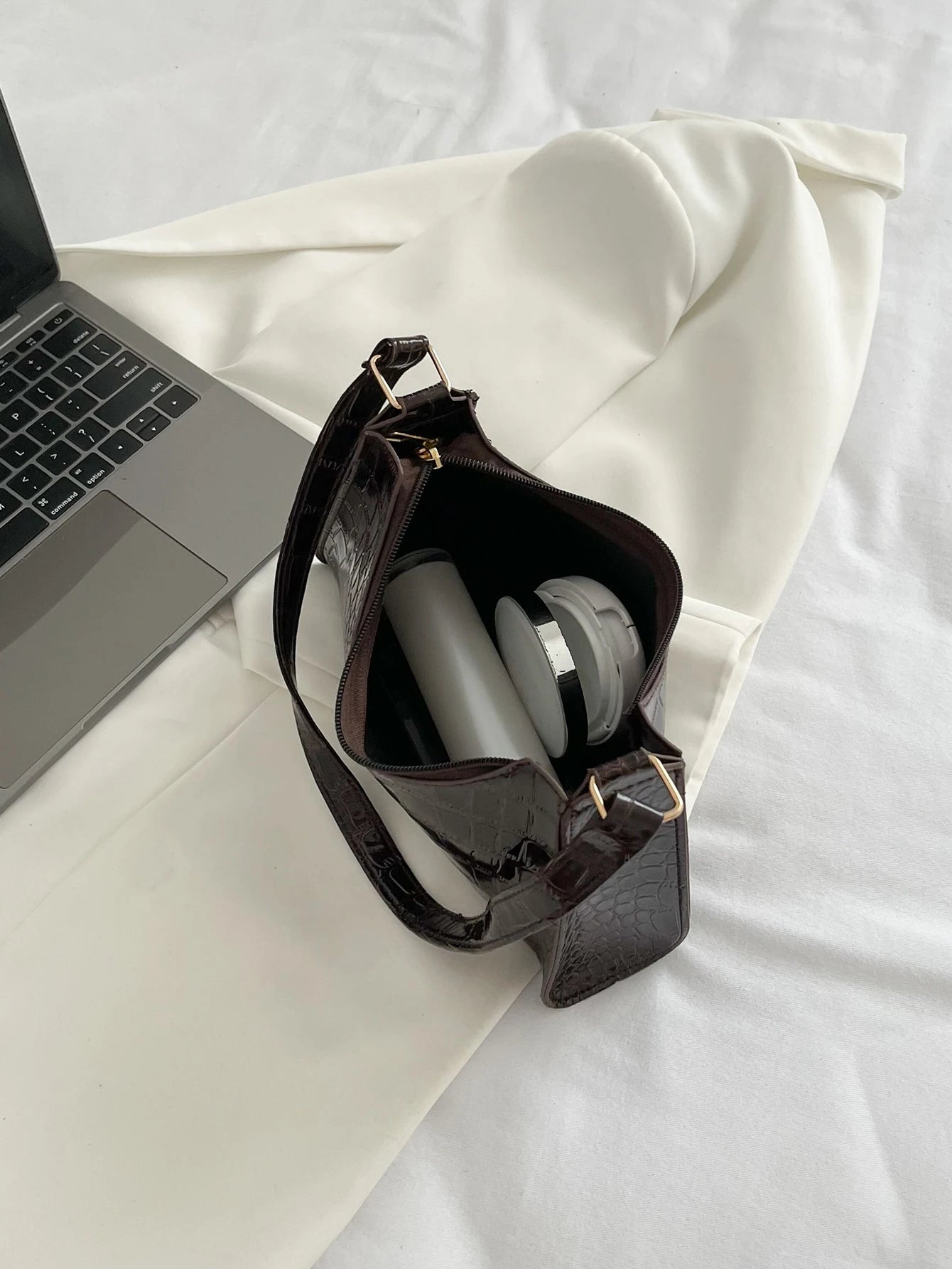 Minimalist shoulder bag crafted from crocodile-embossed faux leather. Sleek and versatile, perfect for casual wear, work, or daily outings with a touch of modern elegance.