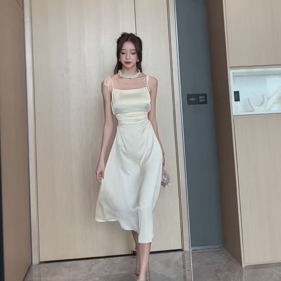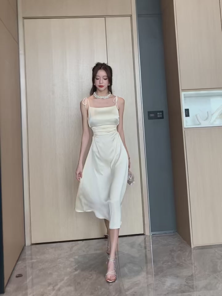 Elegant satin dress featuring adjustable tie shoulder straps for a sleek and feminine look ✨
